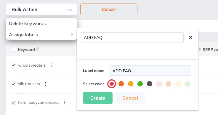 Labels can be created from different places in the platform. The process is the same wherever labels can be assigned to keywords.